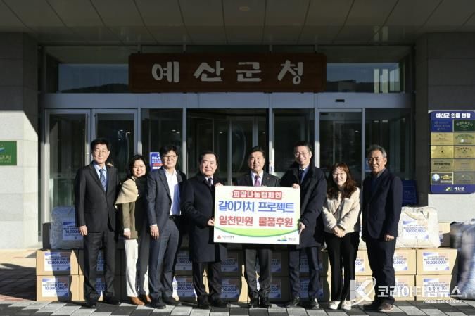 코리아타임뉴스 김택호 기자 | 예산군은 지난 12월 30일 ‘가치같이’ 프로젝트가 참여하는 후원물품 기탁식을 열고 집중호우로 피해를 입은 주민들에게 생필품 꾸러미를 전달했다고 밝혔다.