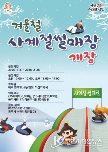 코리아타임뉴스 충남취재본부 | 공주시는 2026년 겨울철 사계절썰매장을 오는 1월 3일부터 2월 28일까지 운영한다고 밝혔다.