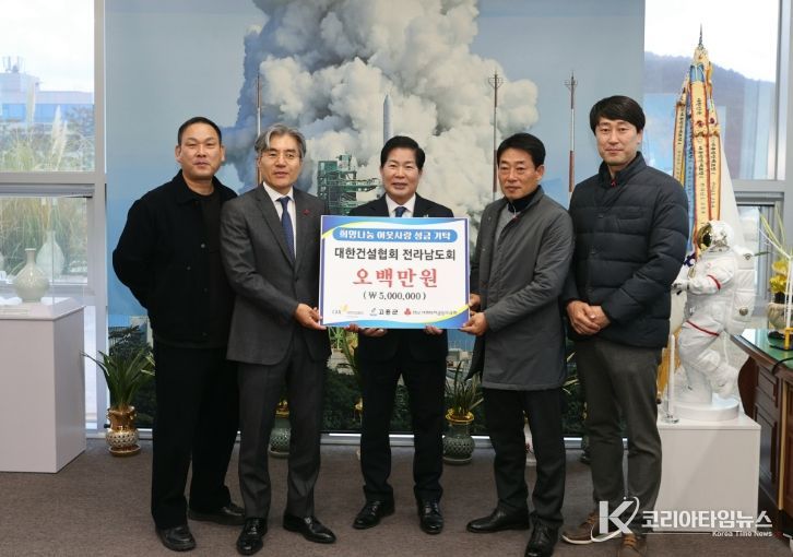 코리아타임뉴스 전남취재본부 | 고흥군은 지난 30일 연말연시를 맞아 대한건설협회 전라남도회(회장 박경재)로부터 지역 내 어려운 이웃을 돕기 위한 성금 500만 원을 기탁받았다고 밝혔다.