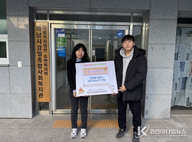 코리아타임뉴스 기동취재팀 | 감일퍼스트태권도장(관장 이양성)은 지난 12월 26일 하남시감일종합사회복지관(사회복지법인 휴먼복지회 운영)에 ‘사랑의 라면트리’ 라면 117개를 전달했다.