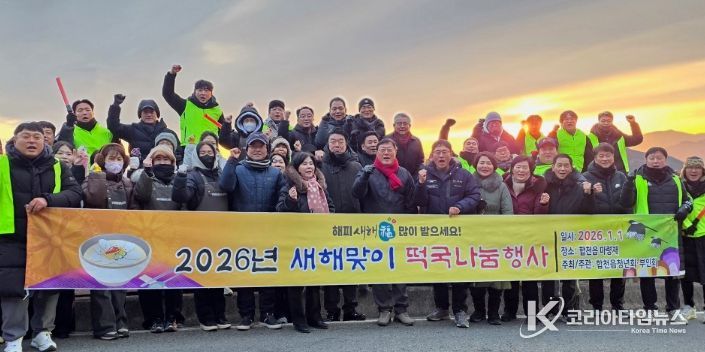 코리아타임뉴스 경남취재본부 | 합천읍청년회는 2026년 병오년 새해를 맞아 1월 1일 새벽 6시부터 합천읍 마령재 일원에서 ‘2026 해맞이 떡국 나눔 행사’를 개최했다.