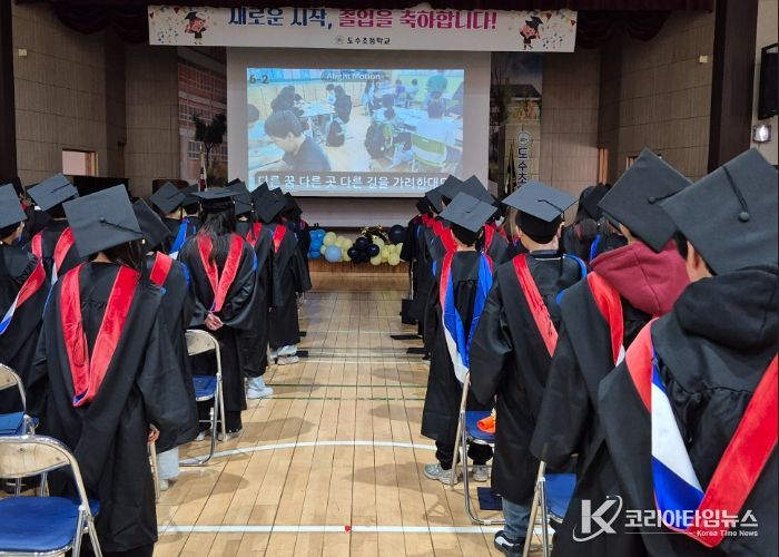 이번 졸업식은 졸업생 전원이 학사복과 학사모를 착용하고 참여해 6년간의 학업을 마친 성취와 도수초 공동체의 일원임을 상징적으로 보여주며 눈길을 끌었다. 졸업생들은 학사모 던지기 이벤트를 통해 새로운 출발을 향한 다짐과 기쁨을 함께 나눴으며, 졸업생 전원에게는 1인 1표창장이 수여됐다.
