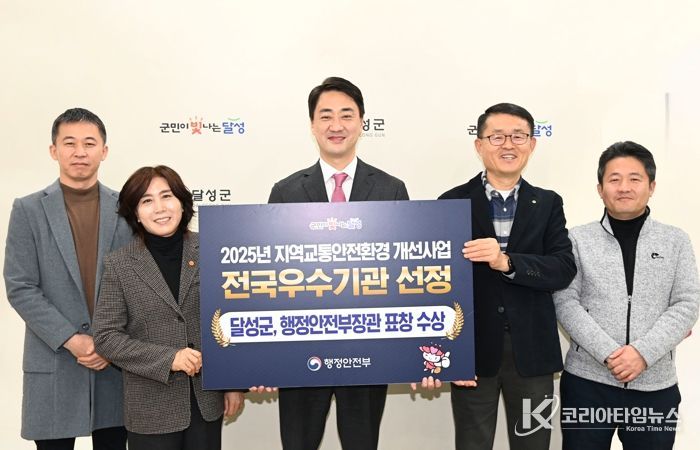 코리아타임뉴스 노승선 기자 | 대구 달성군이 행정안전부 주관 ‘2025년 지역교통안전환경개선사업’ 평가에서 전국 우수기관으로 선정되며, 행정안전부 장관상을 수상했다고 4일 밝혔다.