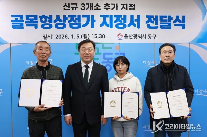 코리아타임뉴스 울산취재본부 | 울산 동구는 1월 5일 오후 3시 30분 구청장실에서 골목상권 활성화를 위한 골목형 상점가 지정서 전달식 및 상인회장 간담회를 개최하고, 동구지역 골목형 상점가 3개소를 추가 지정했다.