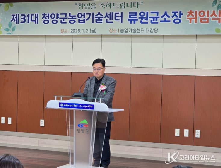 코리아타임뉴스 김택호 기자 | 청양군 농업의 미래를 이끌 새로운 수장이 취임했다. 청양군농업기술센터는 지난 2일 제31대 류원균 소장의 취임식을 개최하고, 본격적인 업무에 돌입했다고 밝혔다.