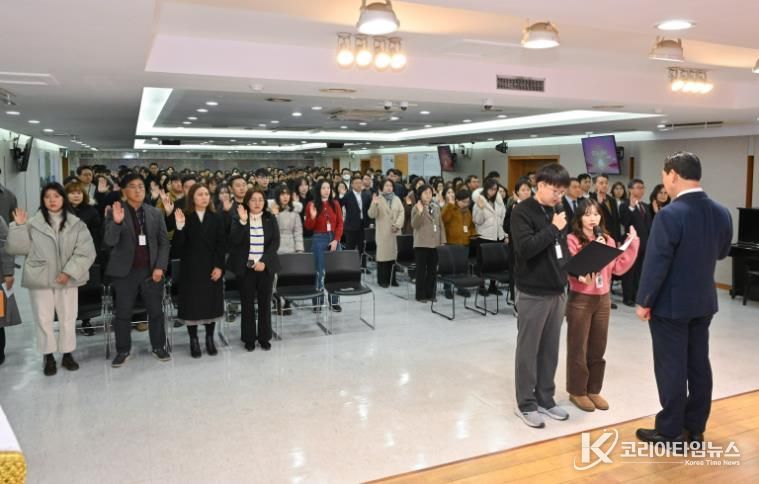 코리아타임뉴스 노승선 기자 | 대구 남구는 지난 1월 2일 드림피아홀에서 열린 시무식에서 전 직원을 대상으로 청렴실천 결의문을 낭독하며, 공직자로서의 각오와 결의를 다지는 시간을 가졌다.