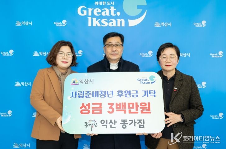 시 관계자는 "추운 겨울에 이웃을 향한 따뜻한 사랑을 실천해 주신 익산 종가집에 깊이 감사드린다"며 "익산시도 자립준비청년들이 건강한 사회 구성원으로 행복하게 성장할 수 있도록 지역사회와 손잡고 세심한 지원을 아끼지 않겠다"고 전했다.