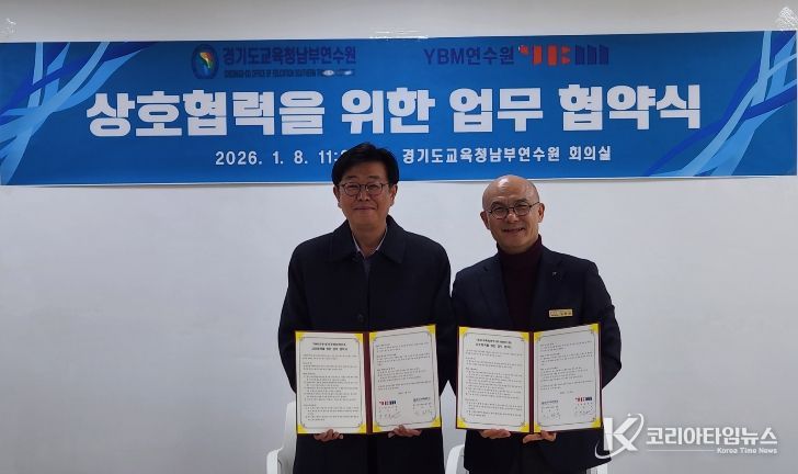 코리아타임뉴스 사회팀 | 경기도교육청남부연수원이 8일 YBM연수원과 교원 연수의 질적 수준을 높이고 연수 운영의 전문성과 효율성을 강화하기 위해 업무협약을 체결했다.