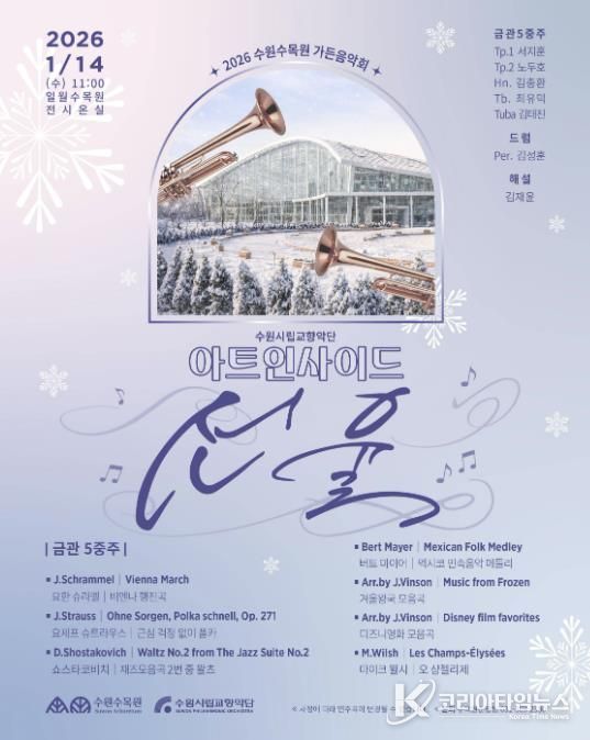 코리아타임뉴스 이아름 기자 | 수원특례시는 1월 14일 일월수목원 전시온실에서 수원시립교향악단 아트인사이드 ‘선율’을 개최한다.