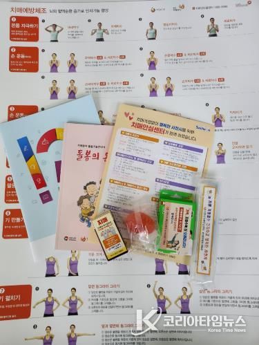 '마음 든든! 치매안심 꾸러미'는 ▲에코백 ▲인지 능력 향상 워크북 ▲악력볼 ▲건강관리 영양제 ▲칫솔세트 ▲위생밴드 ▲치매가족 돌봄기술 안내책자 ▲치매예방 운동 포스터 등 치매예방과 일상 건강관리에 도움이 되는 물품들로 구성돼 있다.