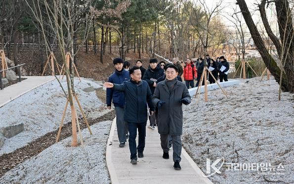 코리아타임뉴스 기동취재팀 | 의정부시는 2026년 병오년 새해를 맞아 1월 8일 녹지 인프라 확충을 위한 주요 사업 대상지를 현장 점검했다. 점검 대상지는 ▲장암동 실외정원 ▲용현산업단지 완충녹지 산책로 및 가로숲길 조성 사업지 ▲민락동 감성쉼터 등이다. 이번 점검은 도심 속 쉼터와 실외정원 확충, 안전한 보행환경 조성, 산림 명소 발굴 등 녹지 인프라 조성 사업의 추진 현황을 점검하고, 시민들이 일상에서 녹지 공간을 보다 쉽게 이용할 수 있도록 추진 중인 ‘도시숲 프로젝트’의 사업 방향과 현장 여건을 확인하기 위해 진행됐다.