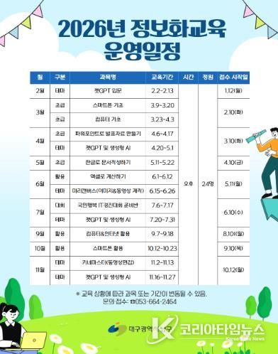 코리아타임뉴스 노승선 기자 | 대구 남구는 구민을 대상으로 2026년 정보화교육을 실시한다고 밝혔다.