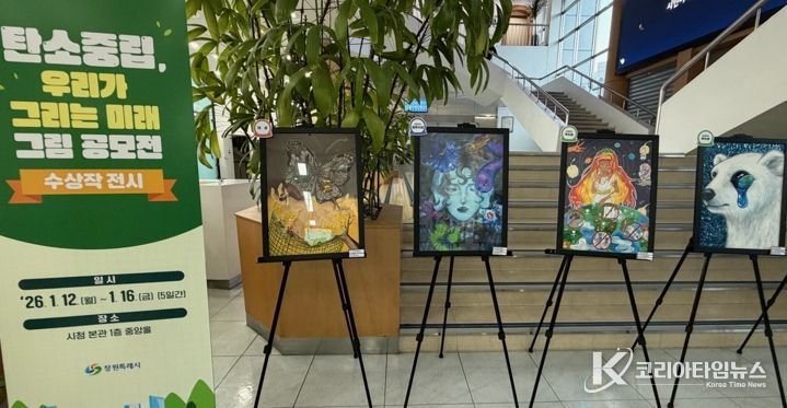 코리아타임뉴스 오영주 기자 | 창원특례시는 미래세대의 눈으로 바라본 기후적응과 회복 메시지를 시민과 공유하기 위해 ‘탄소중립, 우리가 그리는 미래’ 그림 공모전 수상작을 1월 12일부터 16일까지 시청 현관 1층 로비에서 전시한다고 밝혔다.
