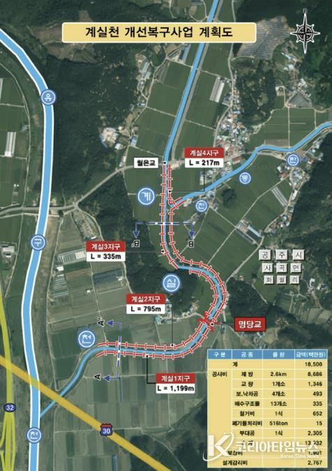 코리아타임뉴스 충남취재본부 | 공주시는 지난해 집중호우로 큰 피해가 발생한 사곡면 화월리 계실천 일원에 총사업비 185억 원을 투입해 ‘계실천 개선복구사업’을 본격 추진한다고 12일 밝혔다.