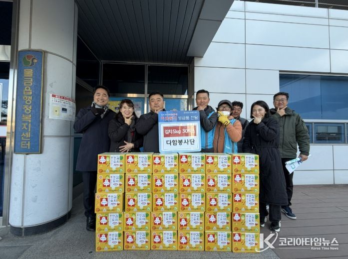 코리아타임뉴스 오영주 기자 | 양산시 물금읍은 지난 11일 다함봉사단(회장 박성관)에서 관내 저소득층 어르신들을 위해 김치(5kg) 30박스를 기부했다고 밝혔다.