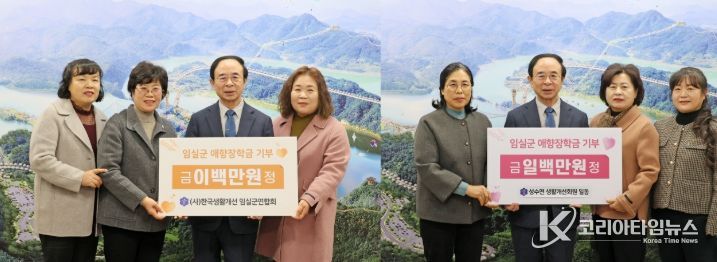 (사)생활개선임실군연합회(회장 정현옥)에서 2백만원을, 성수면 생활개선회(회장 정옥순)에서 1백만원의 애향장학금을 기부했다.