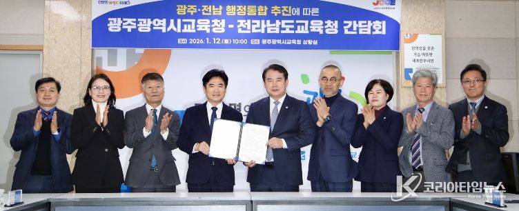 코리아타임뉴스 사회팀 | 전라남도교육청과 광주광역시교육청이 12일 광주·전남 행정 통합에 찬성하고 협력을 다짐하는 공동발표문을 채택했다.