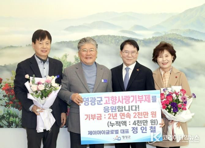 코리아타임뉴스 노승선 기자 | 1월 8일, 제이아이글로벌 정인철 대표가 고향사랑기부금 최고액인 2천만 원을 영광군에 기탁했다.