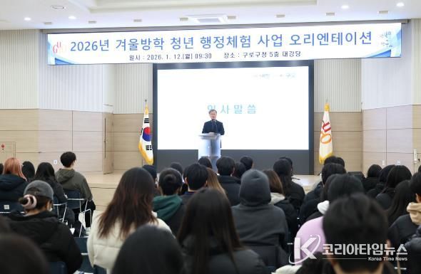 코리아타임뉴스 윤광희 기자 | 구로구가 1월 12일 구청 강당에서 2026년 겨울방학 청년 행정체험사업 오리엔테이션을 열고 본격적인 시작을 알렸다.