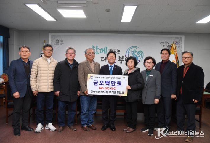 코리아타임뉴스 충남취재본부 | 부여군농촌지도자회(회장 임병우)는 부여군청을 방문하여 인재 육성을 위한 장학금 5백만 원을 (재)부여군굿뜨래장학회에 기탁했다고 13일 밝혔다.