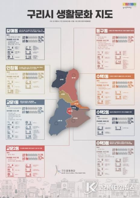 코리아타임뉴스 경기취재본부 | 구리문화재단은 경기문화재단의 지원을 받아 추진한 '2025 경기 생활문화플랫폼 ‘Gu ri:View 구리뷰’' 사업의 일환으로, 구리시 생활 문화 현황을 한눈에 살펴볼 수 있는 ‘구리시 생활 문화지도’를 제작해 지난 1월 12일부터 배포했다고 밝혔다.