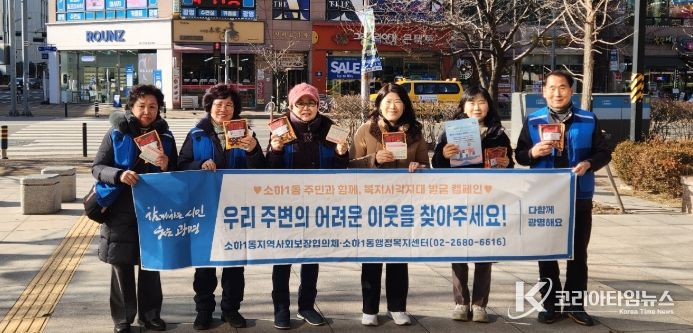 코리아타임뉴스 경기취재본부 | 광명시 소하1동 지역사회보장협의체는 지난 13일 소하상업지역 일대에서 겨울철 복지 위기가구 발굴을 위한 거리 캠페인을 펼쳤다.
