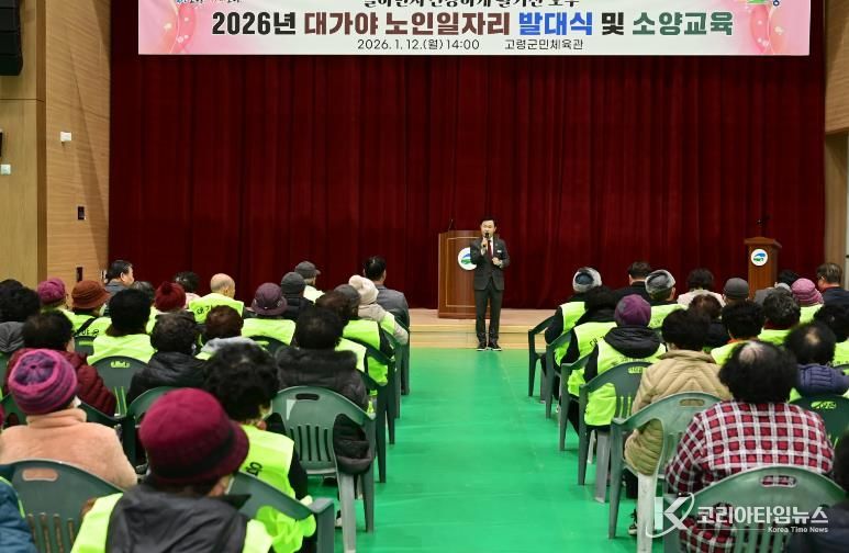 코리아타임뉴스 경북취재본부 | 대가야읍은 2026. 1. 12. 2026년 노인일자리 참여자 등 350명을 대상으로 고령군민체육관에서 노인일자리 발대식 및 안전교육을 실시했다.