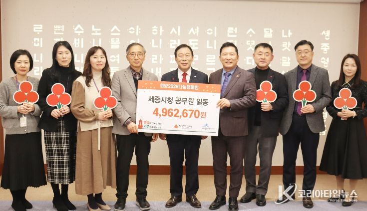 코리아타임뉴스 세종취재분부 | 세종사회복지공동모금회에 따르면 14일 14시30분 세종시청 5층 세종실에서 최민호 세종시장, 박상혁 세종모금회장, 김윤회 세종모금회 부회장 등이 참석한 가운데 ‘희망2026나눔캠페인 희망성금 전달식’을 가졌다.