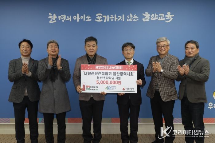천창수 교육감은 “해마다 따뜻한 나눔을 실천해 주신 대한전문건설협회 울산광역시회에 감사드린다”라며 “학생들이 어려운 여건 속에서도 학업에 전념하며 자신의 꿈을 키워가는 데 큰 힘이 될 것”이라고 말했다.