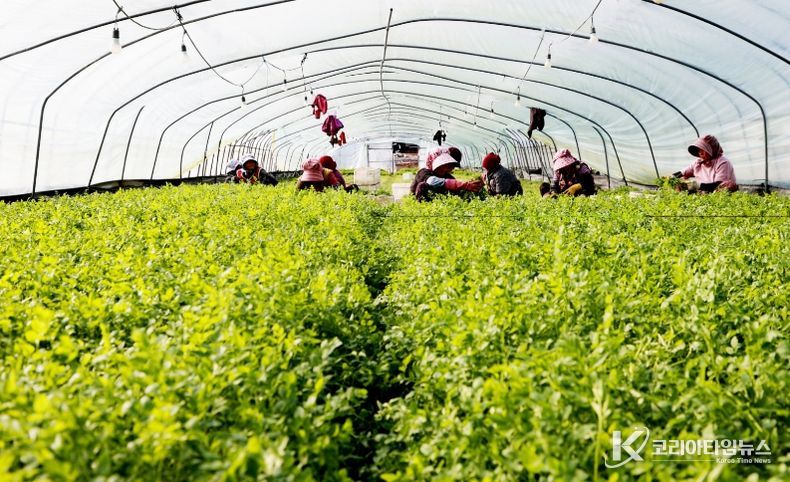 코리아타임뉴스 경남취재본부 | 경남 의령 자굴산(897m) 기슭 가례면 밭미나리 비닐하우스에서 14일 농민들이 겨울 추위를 뚫고 ‘자굴산 청정 밭미나리’ 수확에 한창이다.