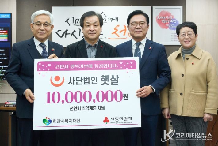 코리아타임뉴스 김택호 기자 | (재)천안시복지재단은 15일 ㈔햇살이 취약계층을 위한 성금 1,000만 원을 기탁했다고 밝혔다.