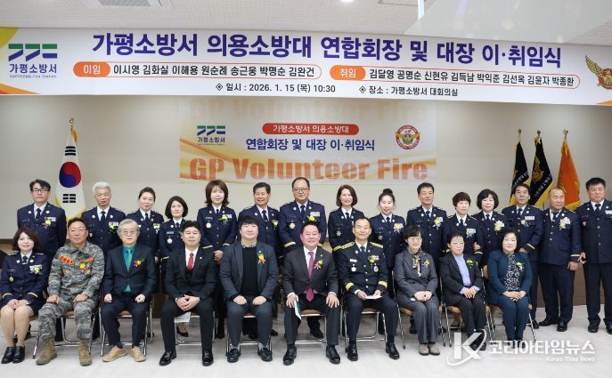 코리아타임뉴스 김태훈 기자 | 가평소방서는 15일 가평소방서 대회의실에서 의용소방대 연합회장 및 대장 이·취임식을 개최했다.
