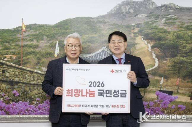 코리아타임뉴스 부산취재본부 | 부산 금정구는 1월 15일 대한적십자사 부산지사에 2026년도 적십자 특별회비 200만원을 전달했다고 밝혔다.