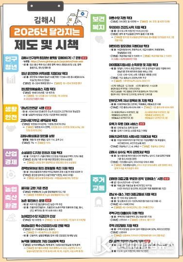 코리아타임뉴스 오영주 기자 | 김해시는 16일 2026년 새해 달라지는 6개 분야 59개 제도와 시책을 안내했다.