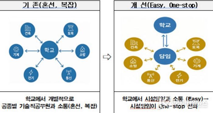 그동안 학교 현장에서는 시설물에 문제가 발생할 경우 건축, 토목, 전기, 기계 등 공종별로 세분화된 교육지원청 담당자를 일일이 확인해 협의해야 하는 불편을 겪어왔다. 특히 시설 노후화와 안전 점검 강화로 인해 전문적인 기술 행정 지원에 대한 현장의 요구가 지속적으로 제기되어 왔다.