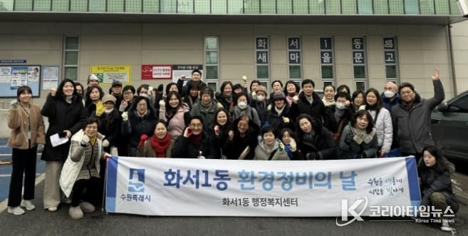 코리아타임뉴스 사회팀 | 수원시 팔달구 화서1동은 지난 15일, 통장협의회 등 단체원 및 주민들과 함께 2026년 설맞이 관내 환경정비를 실시했다고 밝혔다.