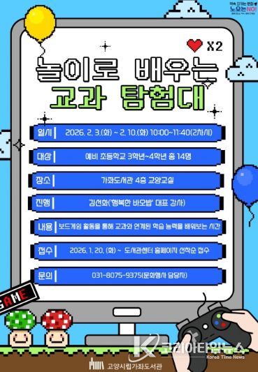 코리아타임뉴스 문화팀 | 고양특례시 가좌도서관은 2월 3일부터 방학특강 프로그램 ‘놀이로 배우는 교과 탐험대’을 운영한다.