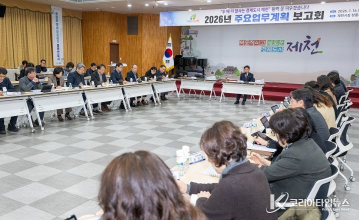 코리아타임뉴스 충북취재본부 | 제천시는 지난 16일 시청 청풍호실에서 전 부서가 참여하는 ‘2026년 주요업무계획 보고회’를 개최하고, 새해 시정 운영 방향과 핵심사업 전반을 점검했다.