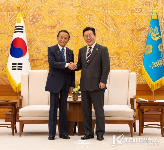 코리아타임뉴스 이아름 기자 | 이재명 대통령은 16일 16시부터 약 30분간 '서울-도쿄 포럼' 참석차 방한한 아소 다로(麻生 太郎) 전 일본 총리를 접견하고, 이번 주 진행된 나라(奈良) 방문(1.13.-14.)과 한일 정상회담 결과 등에 대해 이야기를 나누었다.