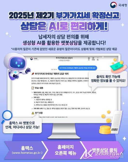 코리아타임뉴스 윤광희 기자 | ■ 2025년 제2기 부가가치세 확정신고 상담은 AI로 편리하게!