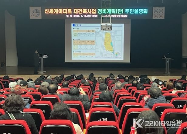 코리아타임뉴스 이아름 기자 | 인천시 남동구는 최근 구청 대강당에서 구월동 신세계아파트 재건축사업의 정비계획 수립 및 정비구역 지정(안)에 대한 주민설명회를 개최했다고 19일 전했다.