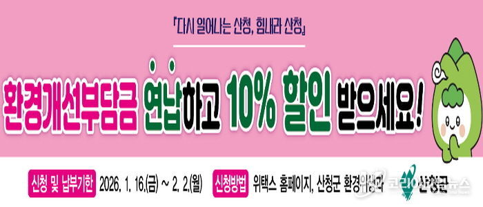 코리아타임뉴스 경남취재본부 | 산청군은 환경개선부담금 연납제를 운영한다고 19일 밝혔다.