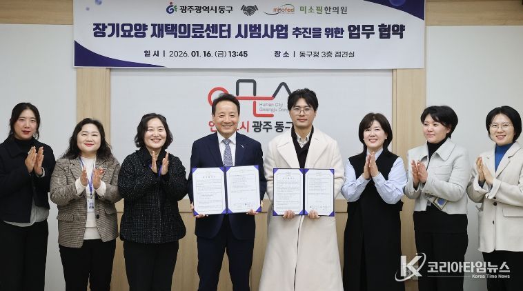 코리아타임뉴스 의료보건팀 | 광주 동구는 16일 미소필한의원(원장 박태희)과 주민 건강증진 및 의료서비스 접근성 강화를 위한 ‘협업형 장기요양 재택의료센터 시범사업’ 추진 업무협약을 체결했다고 밝혔다.