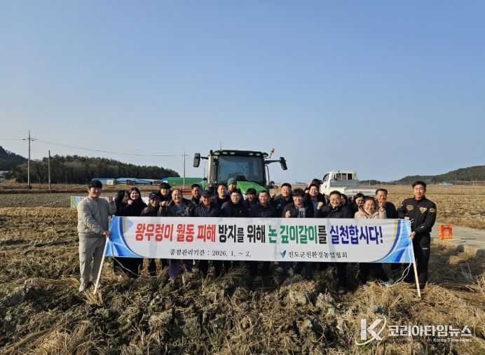 코리아타임뉴스 노승선 기자 | 진도군은 지난 14일 군내면 녹진리 친환경단지 일원에서 ‘월동 왕우렁이 피해 방지를 위한 논 깊이갈이 시연회’를 개최했다.