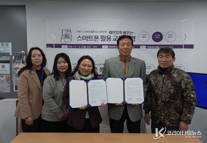 코리아타임뉴스 사회팀 | 부평구 산곡노인문화센터는 지난 16일 부평종합시장 고객지원센터에서 부평종합시장상인회와 ‘1:1 맞춤형 온라인 길라잡이’ 사업추진을 위한 업무협약식을 체결했다.