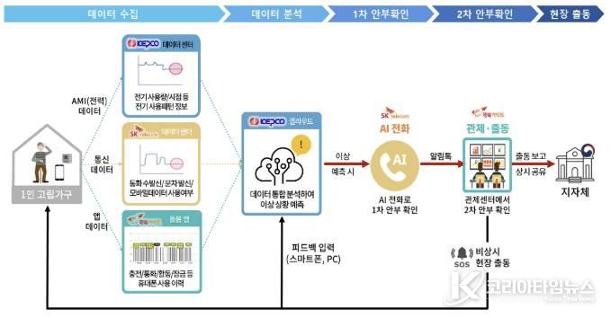 이 서비스는 한국전력공사, SK텔레콤, 행복커넥트가 함께 참여한다. 1인 가구에서 일정 기간 휴대폰 통신기기의 전기 사용량 변화가 감지되지 않으면 이상 상황으로 판단하고 단계별 확인 절차에 들어간다.