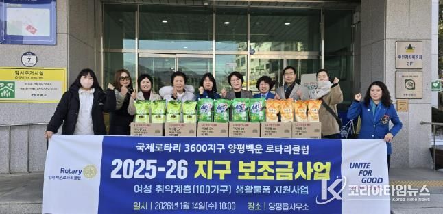 이번 기부는 2025~2026 국제로타리 3600지구 보조사업을 통해 마련된 것으로, 여성 가정의 일상생활에 실질적인 도움이 될 수 있도록 주방·세탁 세제로 구성됐다. 기부 물품은 양평읍을 통해 지원 대상 가정에 순차적으로 전달될 예정이다.