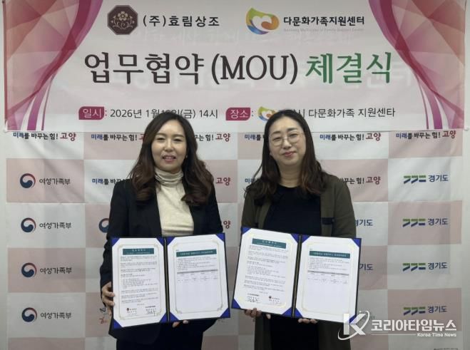 코리아타임뉴스 기동취재팀 | 고양시다문화가족지원센터는 지난 16일, 효림상조와 다문화가정의 안정적인 일상지원과 지역사회 상생을 위한 업무협약(MOU)을 체결했다고 밝혔다.