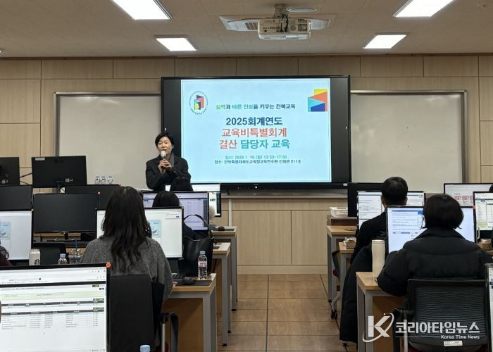 코리아타임뉴스 사회팀 | 전북특별자치도교육청은 19일 전북교육청교육연수원에서 본청과 직속기관, 교육지원청 소속 결산업무 담당자 60여 명을 대상으로 2025회계연도 결산업무 연수를 실시했다.
