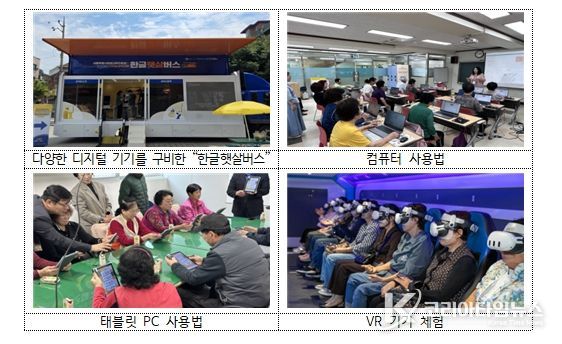 첫째, 찾아가는 인공지능(AI)·디지털 문해교육 “한글햇살버스” 운영 지역을 확대해(5개→9개 내외) 교육 접근성을 높인다. 신체·지리적 여건 등으로 기존 문해교육 참여가 어려웠던 학습자도 “한글햇살버스”를 통해 거주지 내 경로당·마을회관 등에서 무인안내기(키오스크)나 스마트폰의 배달·쇼핑앱 등 디지털 기기·기술 활용 방법을 배울 수 있다.